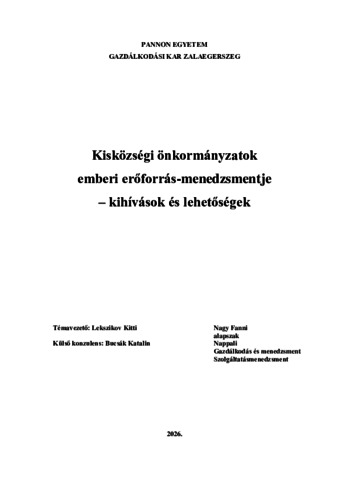 Nagy Fanni (2026) Kisközségi önkormányzatok emberi erőforrás-menedzsmentje - kihívások, lehetőségek. Gazdálkodási Kar Zalaegerszeg.